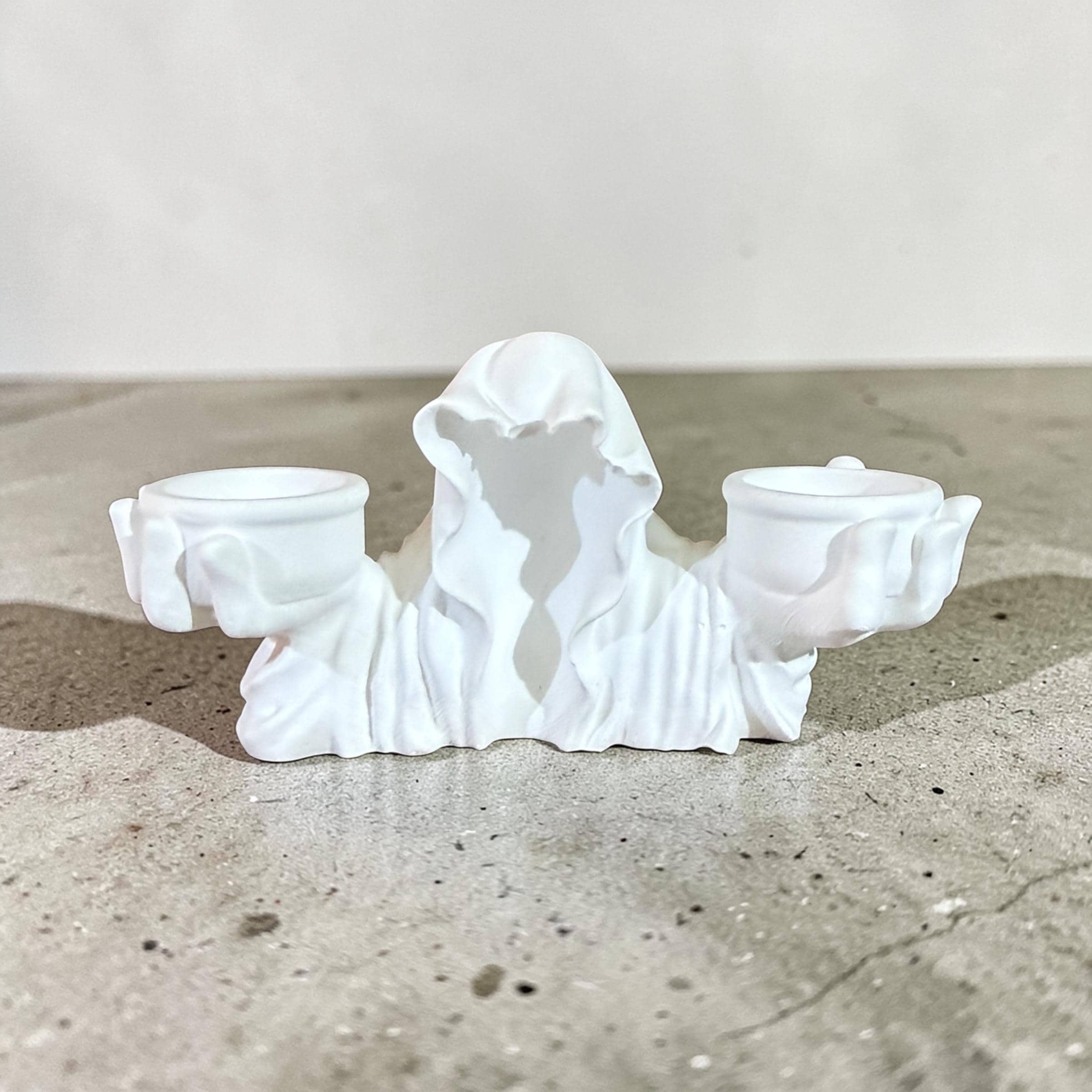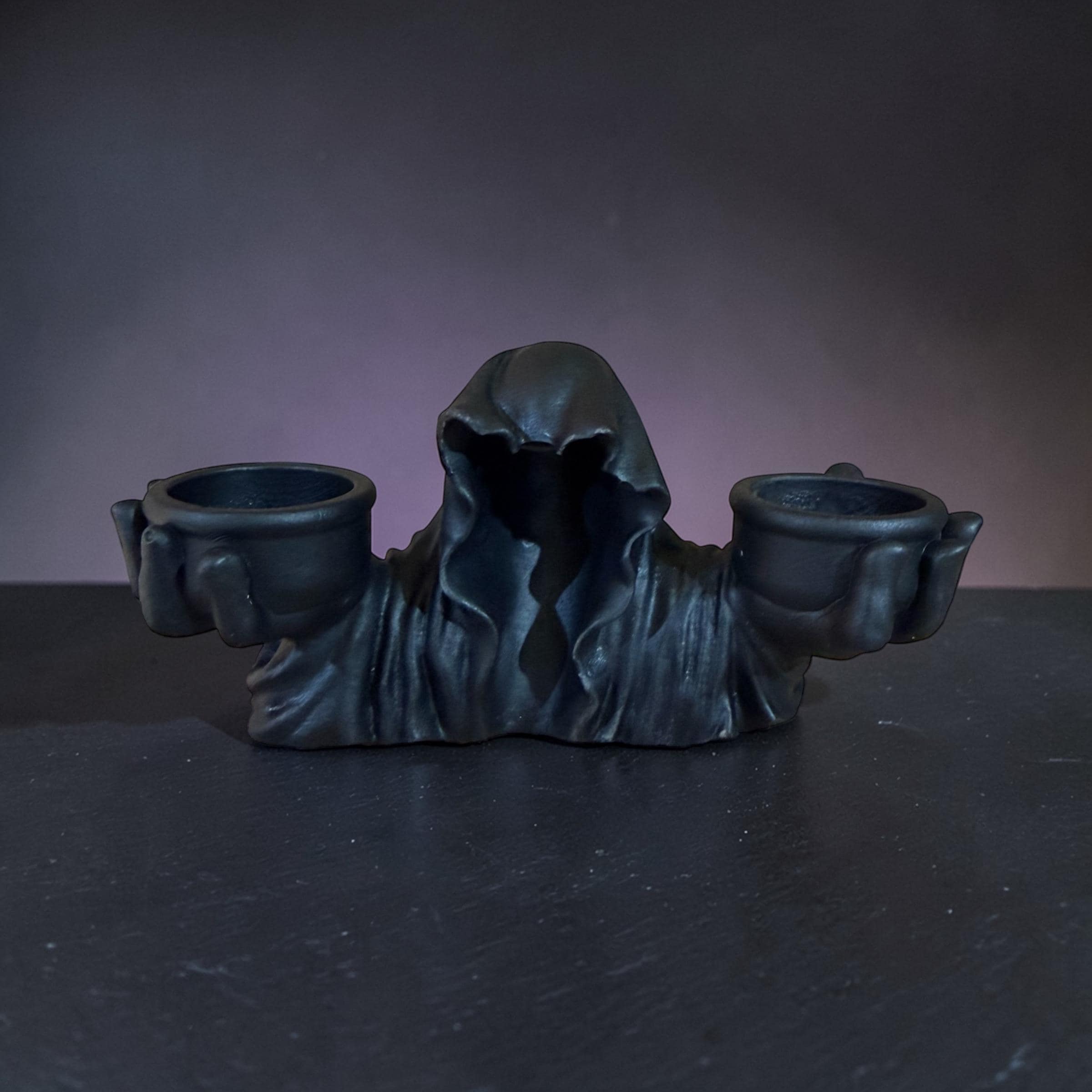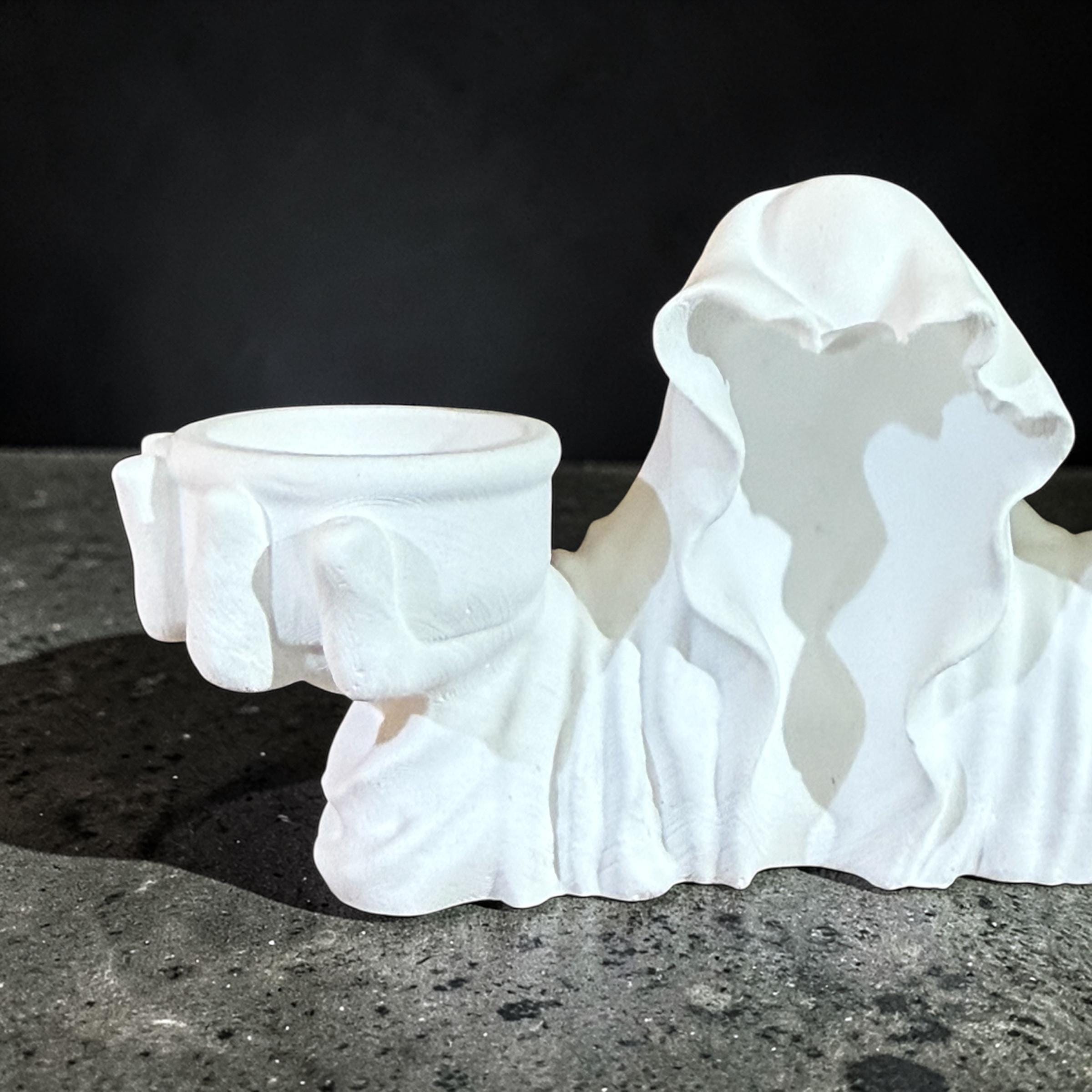 Hooded ghost incense burner with grim reaper details. Gothic smoke statue for Halloween décor, witchy altars and spooky room styling.
