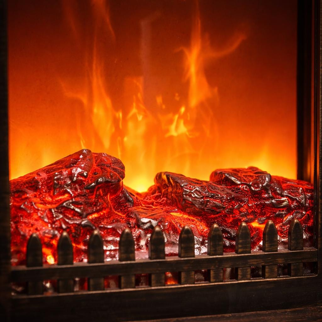 The lantern-style metal frame and glowing ember effect make it a perfect accent for modern, rustic, or cozy interiors.