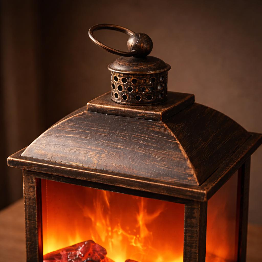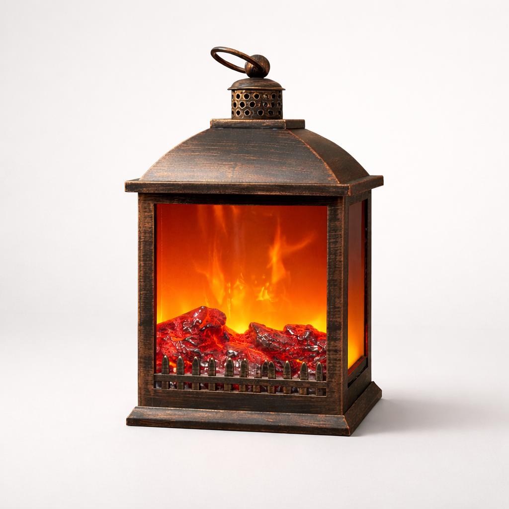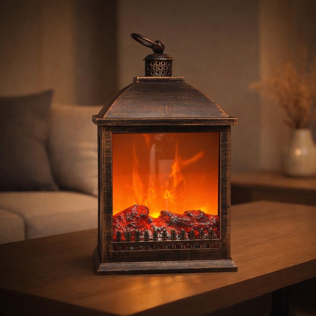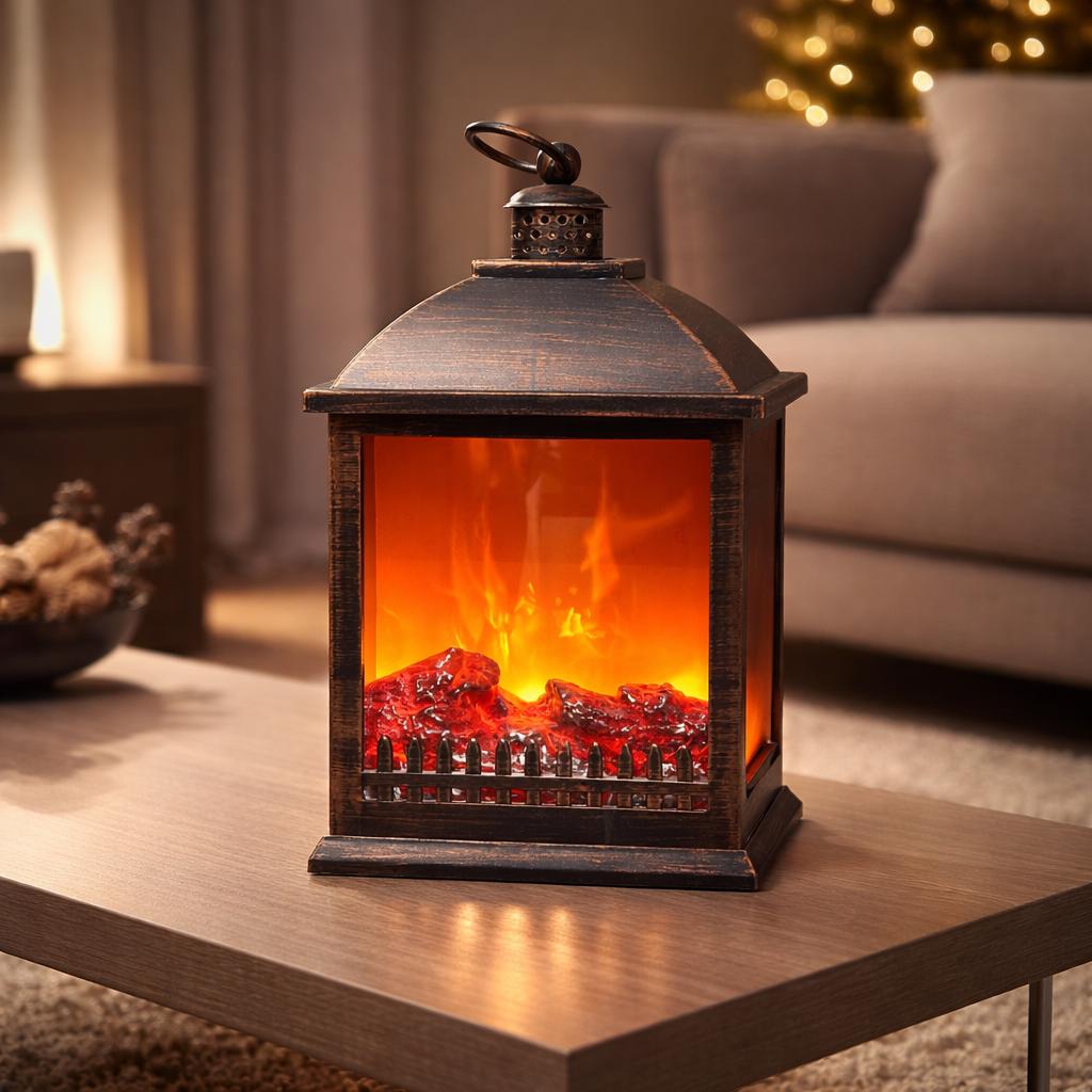 This LED decorative fireplace lantern creates a warm, cozy atmosphere with its realistic flame-effect glow — without real fire or heat.