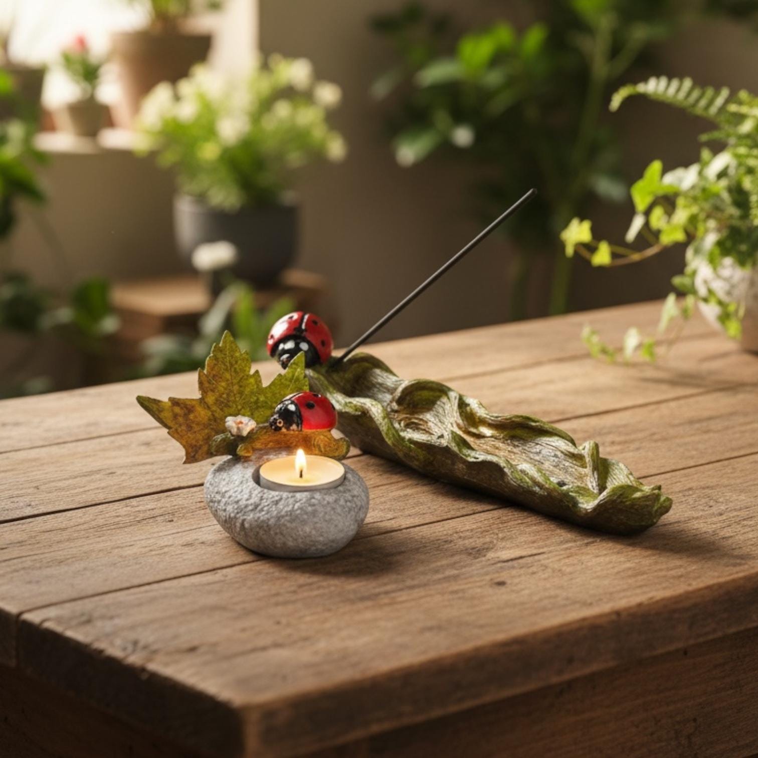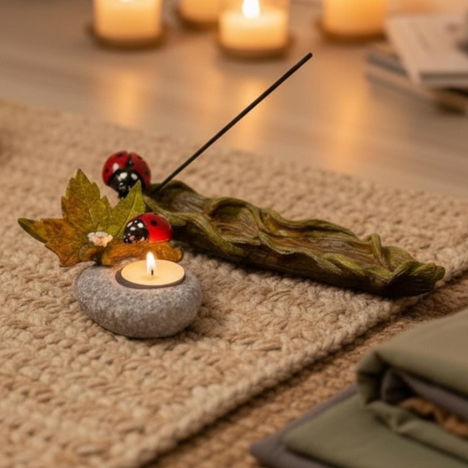 Perfect for woodland decor, cottagecore interiors, meditation corners, or coffee table styling, this set works beautifully with tealight candles and incense sticks.